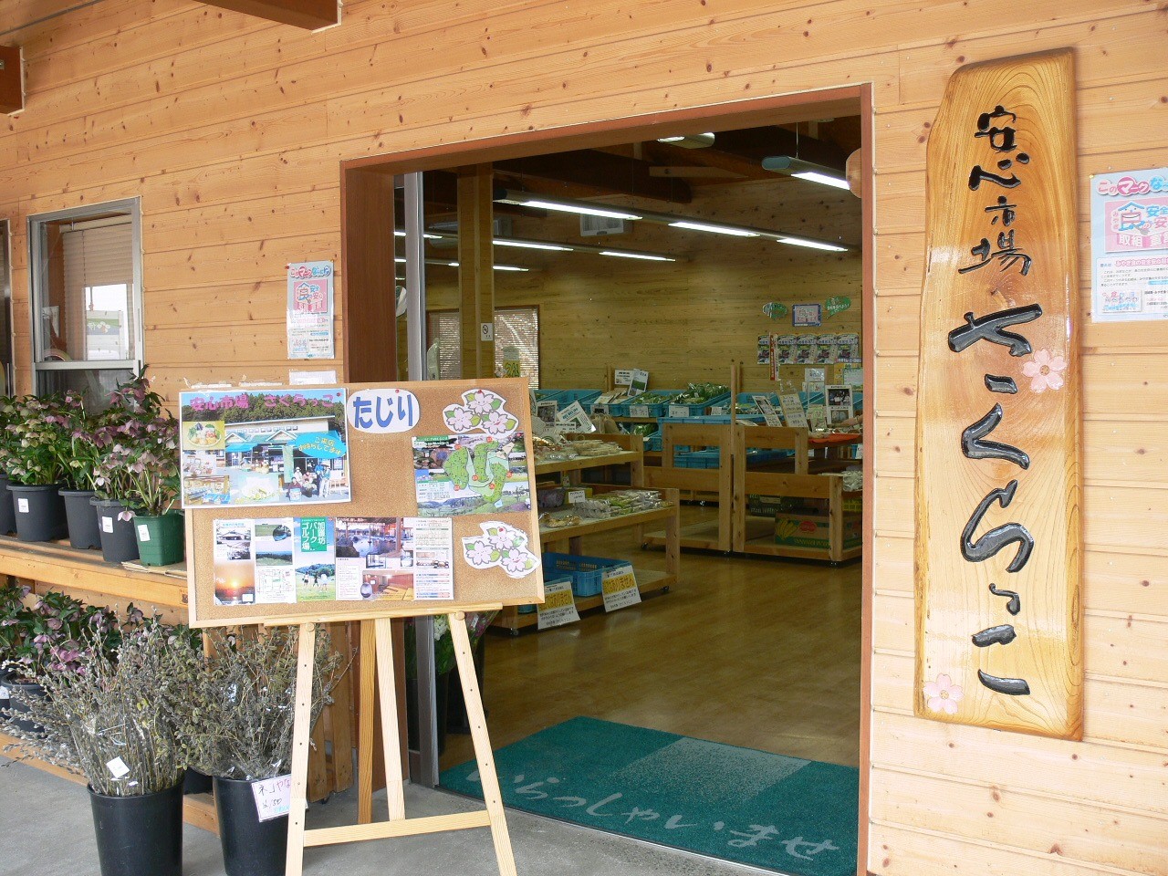 あんしんしじょう さくらっこ産地直売施設「安心市場さくらっこ」は,田尻の農産物や加工品を取り揃えた直売所です。地域の野菜はもちろん,冬の間田んぼに水を張る農法「ふゆみずたんぼ」で蕪栗沼マガンたちと共生して生まれた安心安全のお米「ふゆみずたんぼ米」も販売しています。また,地元産食材を使用して作られたハムやソーセージ,アイスなどの特産品も販売しています。