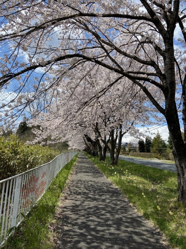 こくどう397ごうさくらのかいろう(ぎんいろのみち)若柳土橋付近から西に約7kmの区間に約600本の桜並木が続きます。昭和初期在郷軍人による植樹が始まりと云われ、昭和39年頃からの緑化運動で盛んに植樹されました。冬の雪の並木は銀色の道の愛称で呼ばれ徳水園には歌碑が建っています。