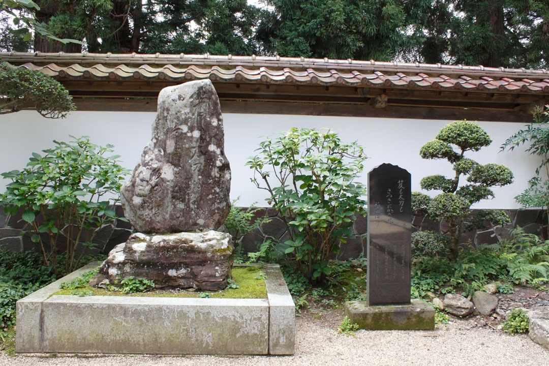1689(元禄2)年5月、「奥の細道」の途中、当寺を訪れた松尾芭蕉は、医王寺に残る悲しくも愛情に満ちた佐藤一族のお話に触れ「笈も太刀も五月にかざれ紙幟」の句を残しました。句碑は1800(寛政12)年に大阪の俳人大判大江丸の筆によるものです。