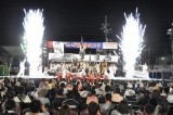 各团体在旋律轻快的伴奏中起舞,动作一丝不乱,叹为观止!也有可近距离观赏充满震撼力舞姿的付费观览席位。