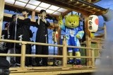 “村山德内节”会场在山形县村山市,手拿鸣子响板的舞者们在轻快的伴奏声中雄壮地翩翩起舞。伴奏乐手们站在匠心独具的豪华花车演奏轻快的旋律,多达3000名舞者们发挥各团体的特色,表演舞蹈。