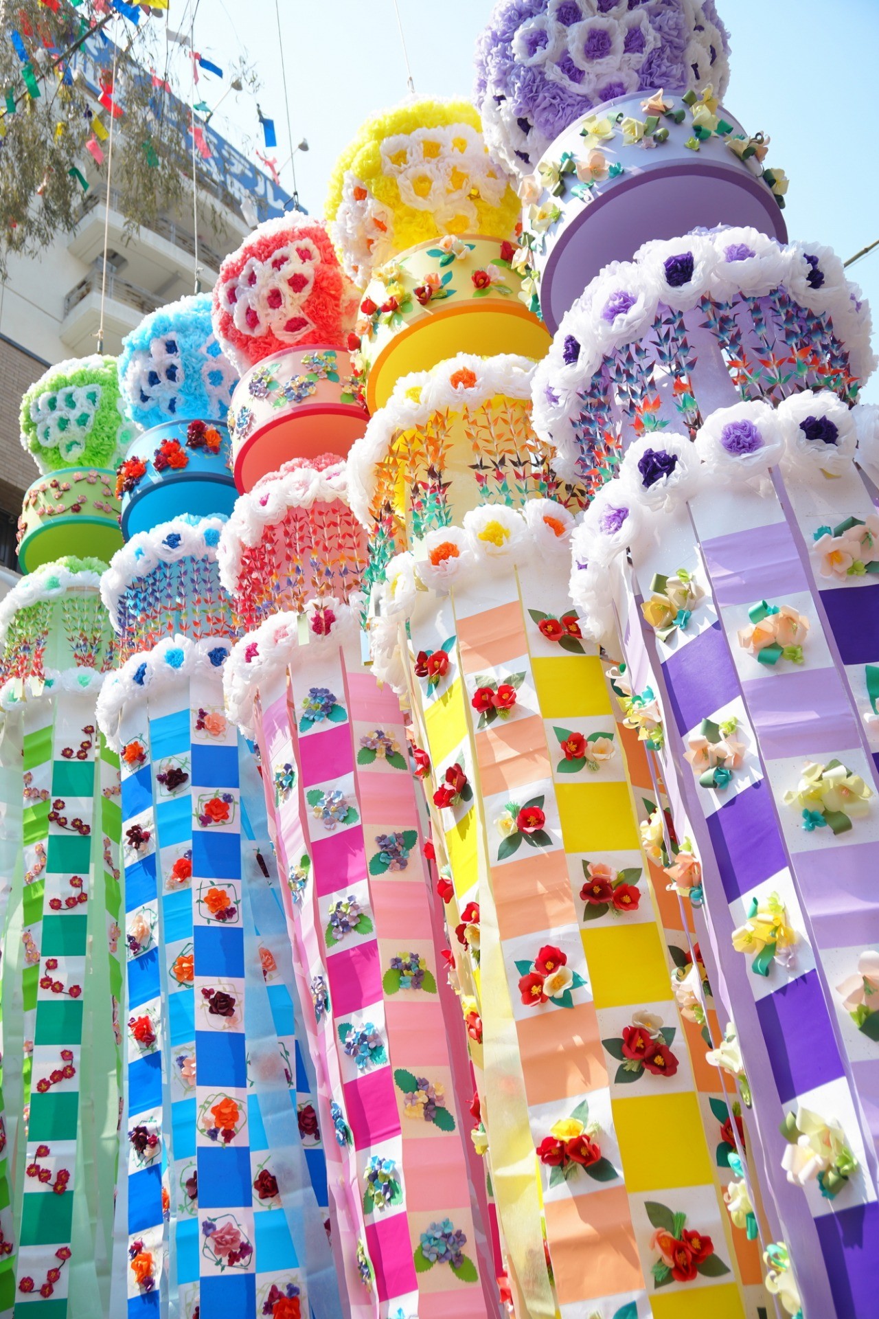 七夕节期间,一番町和中央大道等步行街、仙台站附近,都会装饰上巨大的七夕装饰,街上到处可见色彩鲜艳的七夕装饰。仙台七夕节最大的特征是,七夕装饰是用"和纸"制作而成的。各商店装饰上使用多种和纸,按照各自的喜好制成的七夕装饰,华美动人。各商店街都会举行装饰的评审,获奖的七夕装饰根部会挂上金、银、铜各奖项的牌子,一边观赏一边寻找获奖作品亦为一乐事。