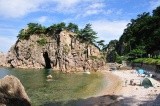 清澈的碧蓝色大海和白沙形成鲜明对比,无比美丽。笹川流是位于村上市11公里长的海岸。因日本海的惊涛骇浪侵蚀而形成的奇岩、岩礁、洞窟等,遍布变化多端的风景,雄伟的景观是国家指定的名胜以及天然纪念物。