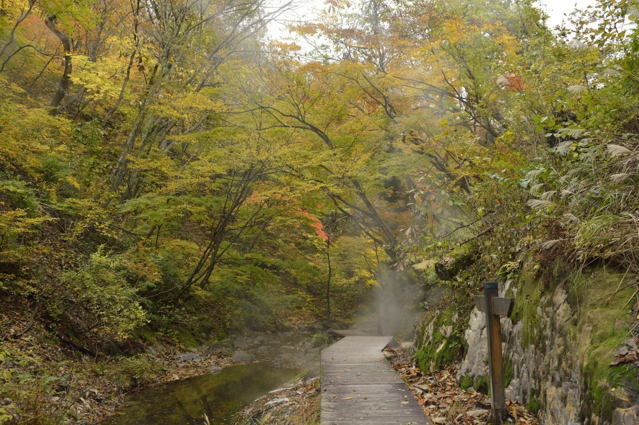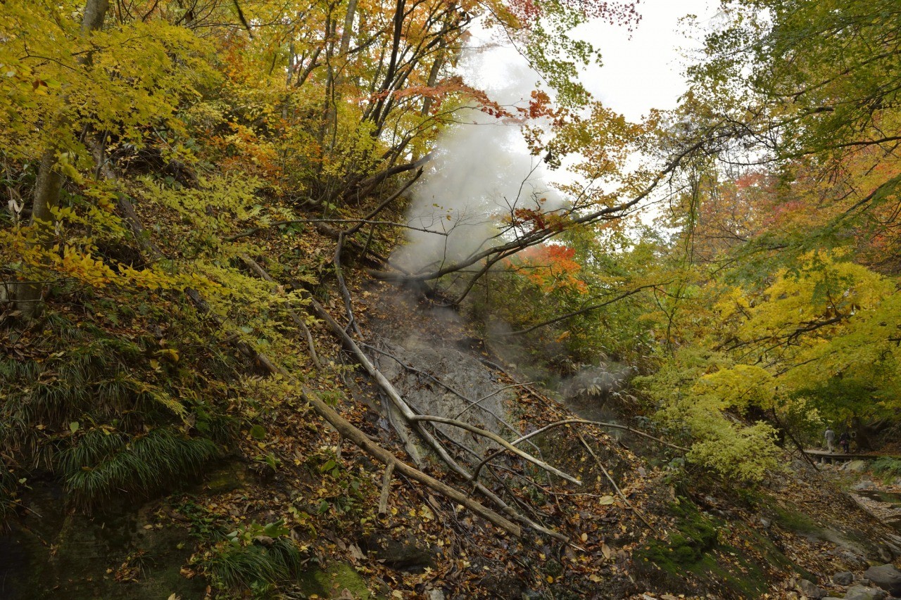 吹上地狱谷游步道是鬼首温泉的秘境。走在游步道上聆听河流水声,心情舒畅,而周围移步换景……。进入这个区域,首先会听到声响,接着地面到处涌出温泉,水蒸气弥漫。热腾腾的温泉伴随着噗嗤噗嗤声涌出的情景就像地狱一般,让人感受到大地释放的能量与大自然的伟大。秋季升腾的温泉蒸气与红叶相映成趣,景色十分美丽。