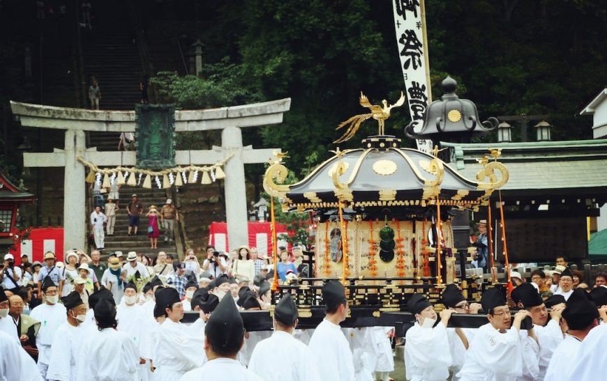 鹽竈港祭 神輿橫渡海上。御座船巡幸日本三景之一的松島灣 「鹽竈港祭」名列「日本三大船祭」之一。 而最大的看點絕對就是神輿海上渡御!志波彦神社和鹽竈神社各有一座神輿,其各自的御座船名為「龍鳳丸」與「鳳凰丸」,會帶領著約100艘供奉船,一起巡幸日本三景松島灣內。以美麗的群島與海景為背景展開航行的華麗壯觀船隊,有如平安繪卷上的圖畫。 自古以來,本地流傳在海上替人開道的神明就是鹽土老翁神,每年必須要帶祂到海上一次,因此這個神輿海上渡御便是崇敬神明的子民們所舉辦的感恩慶典。 前夜祭會施放約8000發煙火,繽紛的色彩將照耀整個海面。 區域 仙台・秋保・作並 宮城縣 觀看照片 列印 儲存我的計劃 移除我的計劃 基本資訊 地址 宮城県塩竈市 交通 至鹽釜港, ●JR仙石線本塩釜站・東塩釜站步行10分鐘 ●三陸自動車道 利府塩釜IC約10分鐘 停车场 無 官網 http://kankoubussan.shiogama.miyagi.jp/tourism/minato-matsuri.php 举办期间 毎年7月第3個星期日~一 会场名称 宮城縣塩竈市鹽竈神社、塩釜港周邊 洽詢單位 联系方式 鹽釜市觀光交流課・鹽釜市觀光物產協會 电话号码 022-364-1165
