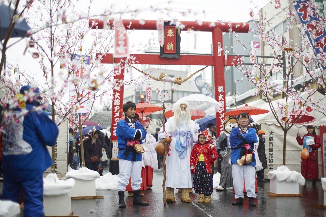 在忠犬八公的故鄉大館市內,俗稱的「大町八公通」上,每年二月的第2個星期六和翌日會舉辦延續了400多年的這場冬季應景活動。傳說中「這天吃了糖果就整年不會感冒」。根據古代記錄,最早是起源於把糖果掛在「燈台樹」的樹枝上象徵稻穗供奉神明,之後吃了糖果就會驅除邪氣。
