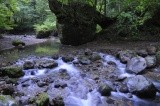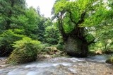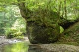 nekobari iwa深受釣客喜愛的馬場目川上游,有一塊靜靜佇立的巨大奇岩,名為根古波離(nekobari)岩。岩石高約6公尺,有好幾棵大樹盤根錯節,宛如一座小森林一般,十分不可思議。樹木根部像是波浪一般攀爬連到地面,因而得名「根古波離(nekobari:neko=根,bari=攀爬)」。想盡辦法要與地面相連的模樣,讓人感受到大自然不屈不撓的強韌生命力。有人認為岩石整體看來就像是巨大生物一般,也有人認為這裡是能感受到森林能量的景點。
