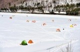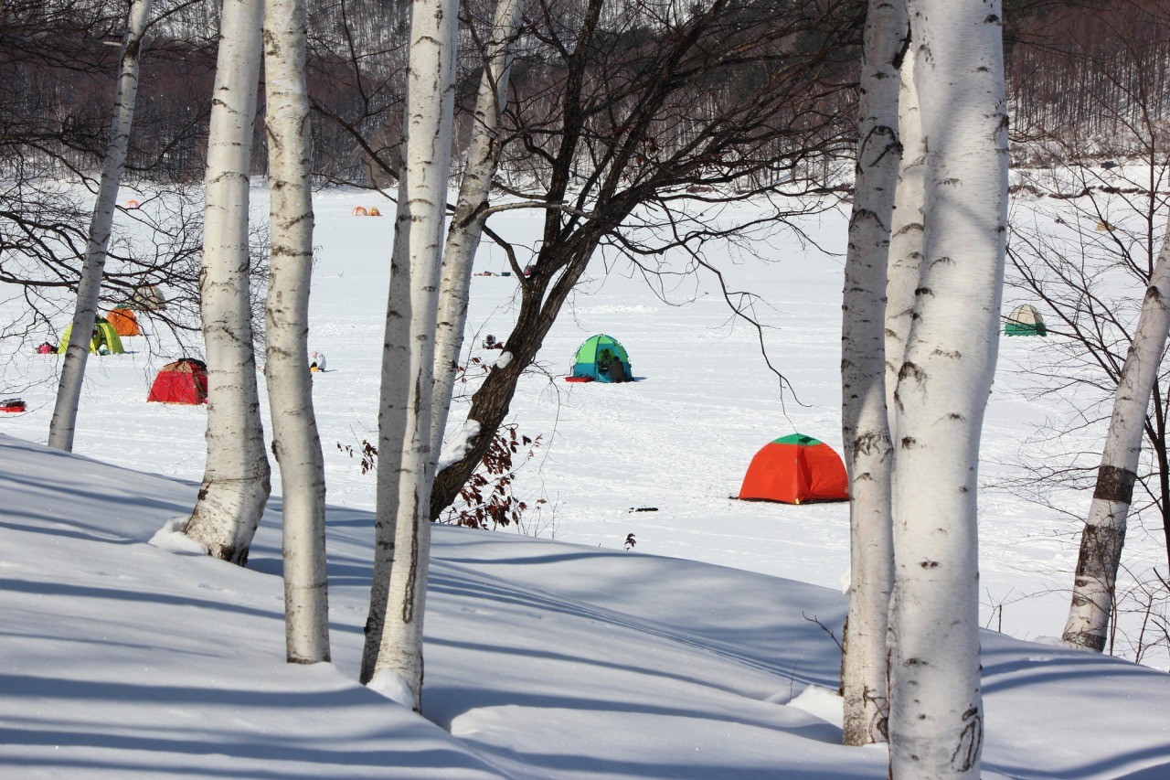毎年一到1月中旬~3月下旬的旺季,岩洞湖就會湧來享受垂釣西太公魚的遊客。在結冰的湖面上鑿洞垂下釣線引西太公魚上鉤。鑿冰凍專用的錐子、釣竿、冰上專用帳棚等都可以在休息小屋裡租借。防寒衣物及小椅子則請自備。還有供初學者使用的西太公魚學校(收費・需預約)。釣點會依時期有所變動,1月是在岸邊釣,水深5~12公尺。2月在稍微離岸處,水深15~20公尺。3月則再靠回岸邊釣況會較好。