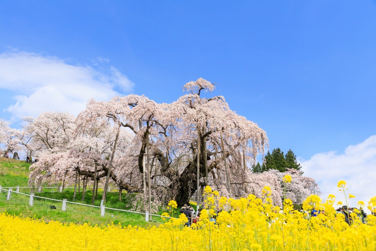 三春瀧櫻 Miharutakizakura 推估樹齡1000年以上!巨大櫻樹的美麗姿態令人屏息並遙想歷史 推估樹齡1000年以上的紅枝垂櫻樹,獲指定為國家天然紀念物,同時也是日本三大櫻樹之一。 巨大的櫻花樹高13.5公尺,根部周長11.3公尺,枝葉伸展東西寬25公尺,南北長20公尺,就近欣賞震撼力十足。據稱因樹枝上開滿淡紅色小花,遠看有如瀑布(瀧)流瀉一般,因此又名「瀧櫻」。除了白天欣賞外,夜間打燈的瀧櫻也不容錯過(打燈期間隨開花狀況而異)。 此外,瀧櫻花季中會進行交通管制,可能塞車,因此推薦各位搭乘大眾交通工具前來。公車、計程車路線與一般車輛不同,不會塞車,能順利前往瀧櫻。三春運動公園還有行駛專用路線的免費接駁車。 區域 郡山 福島縣 類別 Base! 東北 自然 觀看照片 列印 儲存我的計劃 移除我的計劃 基本資訊 地址 福島県田村郡三春町大字滝字桜久保296 费用 賞櫻費用300日圓(國中生以下免費) 交通 ●從JR磐越東線三春站搭乘公車約15分鐘 ●下磐越自動車道 船引三春交流道後約20分鐘 停车场 有 官網 瀏覽網頁 口碑 評論 (TripAdvisor) 洽詢單位 联系方式 ①三春街區建設公社/三春觀光協會 ②三春町公所 產業課商工觀光團隊 电话号码 ①0247-62-3690 ②0247-62-3960