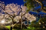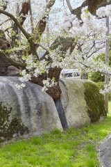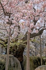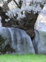 這是一株位於盛岡地方法院的腹地內,樹幹圍4.3公尺、高10公尺,樹齡360歲的江戶彼岸櫻。這顆櫻花樹突破了周長21公尺的巨大岩石向上生長,讓人感受到無窮的生命力。每年四月中旬櫻花盛開,舉辦櫻花祭時就會吸引許多市民與觀光客來瞻仰。白天看春季陽光灑落在櫻花上極美,但燈下夜櫻也有萬種風情。1923年被列為國家天然紀念物。