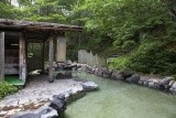 混浴露天浴池「唐子湯」位於離旅館50公尺左右的原生林中,大自然環抱下,能感受到季節變換。新綠時節,樹木的綠意倒映在透明的溫泉水面,非常美麗。冬季則能邊泡湯邊賞雪。夜間燈籠的火光十分夢幻,與白天截然不同。由於混浴溫泉水質透明,夜間是女性專用時段,推薦各位住宿並盡情享受。對肌膚十分溫和的溫碳酸氫鹽泉,能長時間悠閒泡湯。