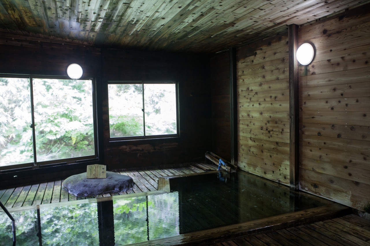 男女各自的內部浴池「木浴池」有許多大型溫泉沈澱物結晶。以秋田杉木建成的浴室裡充滿で作られた浴室に寂寥風情。館內還有女性專用露天浴池及男女分開的岩石浴池,也請多加利用。