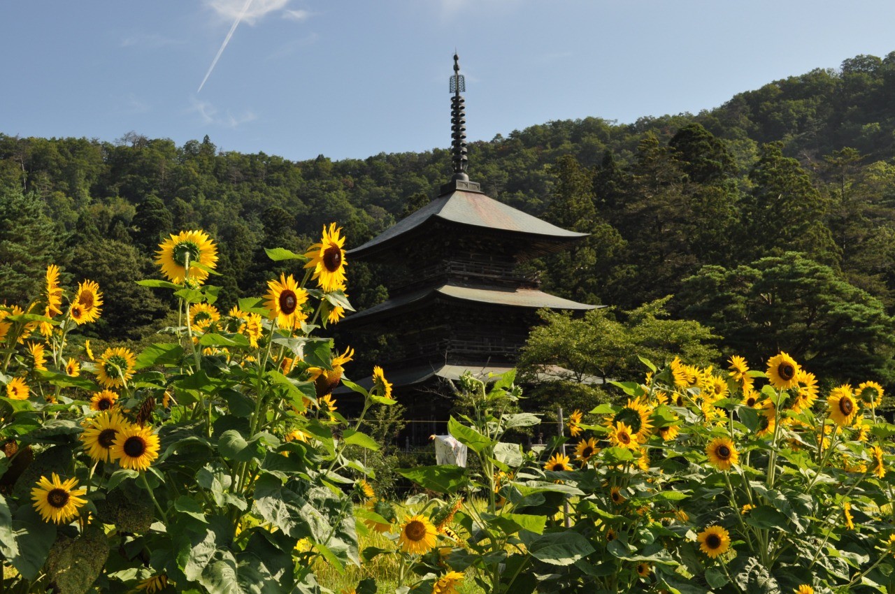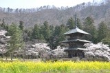 เพลิดเพลินไปกับทัศนียภาพอันน่าอัศจรรย์ของเจดีย์สามชั้นอันเก่าแก่ และดอกซากุระบานสะพรั่ง