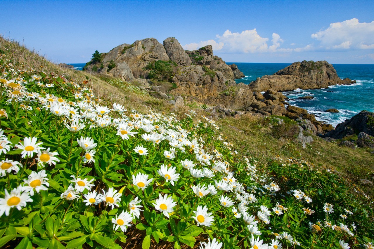 ≪จุดชมวิว Ashigezaki≫ ตั้งอยู่บนส่วนปลายสุดของแหลมที่ยื่นออกไปในทะเล กล่าวกันว่าสถานที่แห่งนี้ถูกใช้เพื่อตรวจตราเรือต่างประเทศในช่วงปลายยุคเอโดะ และถูกใช้โดยกองทัพญี่ปุ่นในช่วงสงครามแปซิฟิก ในปัจจุบันกลายเป็นสถานที่ส่งผ่านความสวยงามสู่สายตาของผู้คนในฐานะจุดชมวิวที่ได้รับการยอมรับจากทางรัฐบาลญี่ปุ่น≪Nakasuka≫มีทางเดินเลียบไปตามแนวเวิ้งน้ำและโขดหิน เนื่องจากอิทธิพลของกระแสลมเย็น Yamase พืชหลายชนิดที่บานสะพรั่งเฉพาะบนภูเขาสูงจึงเติบโตเป็นรวมกันเป็นดงเป็นกอ ทำให้การเดินเล่นบนทางเดินชมธรรมชาติสนุกยิ่งขึ้น ≪Kama no Kuchi≫ในเวิ้งน้ำทอดไปในทะเลมีหินขนาดใหญ่ที่มีลักษณะเหมือน หม้อหุงข้าวหรือต้มน้ำแบบญี่ปุ่นที่มีขอบรอบและมีฝาไม้ปิด เลยถูกเรียกว่าเป็น “ปากหม้อ” หรือ Kama no Kuchi ในภาษาญี่ปุ่น ≪หาด Osuka≫ ชายหาดที่มีทรายร้องเพลงอันล้ำค่า หาดทรายขาวยาว 2.3 กม. เป็นหาดทรายที่ใหญ่ที่สุดในโทโฮคุที่คุณสามารถเดินเล่นได้≪ทรายร้องเพลง≫ คุณสามารถเล่นกับทรายร้องเพลงได้ที่หาด Osuka เมื่อทรายถูกขัดถูจะเกิดเสียงแหลมๆดังขึ้นมา เสียงนี้ดังขึ้นเมื่อเม็ดควอตซ์มนๆที่อยู่ในทรายอยู่ในสภาพสะอาดไม่มีตะกอนและแห้ง ≪Shiraiwa≫ ถูกเรียกว่า Shiraiwa (โขดหินสีขาว) เพราะโขดหินนี้ถูกปกคลุมไปด้วยมูลนกกาน้ำที่เป็นสีขาว ทำให้เกิดสีที่ตัดกันระหว่างสีฟ้าของน้ำทะเลกับท้องฟ้าและสีเขียวของต้นสนได้อย่างสวยงาม ≪Yodo-no-Matsubara≫ ทางเดินที่เรียงรายไปด้วยต้นสนที่มีอายุกว่า 100 ปี เมื่อมองลอดผ่านช่องต้นสนคุณจะเห็นความงามและความยิ่งใหญ่ของชายฝั่ง≪ทุ่งหญ้าธรรมชาติ≫ที่ราบที่ปกปูด้วยหญ้าเขียวขจียาวไปถึงขอบคลื่น เกิดเป็นภูมิทัศน์แบบเปิดพร้อมทิวทัศน์ของมหาสมุทรแปซิฟิก ภูเขาหินปรากฏขึ้นตลอดทางจนถึงเขต Okuki ทางตอนใต้สุด