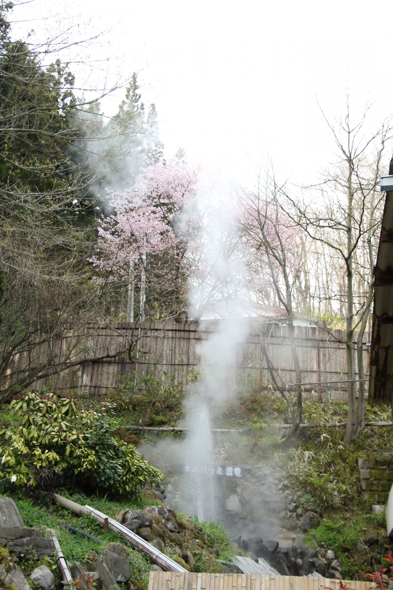 "เบนเทน" เป็นน้ำพุร้อนกีย์เซอร์ที่พุ่งสูงประมาณ 15 เมตรทุกๆ รอบประมาณ 10 นาที น้ำใต้ดินที่เก็บกักอยู่ในโพรงใต้ดินเมื่อโดนความร้อนจากภูเขาไฟ ส่วนหนึ่งจะกลายเป็นไอน้ำด้วยแรงดันดังกล่าวทำให้น้ำร้อนที่เหลืออยู่พุ่งออกมาบนแผ่นดิน "อุนริว" น้ำพุร้อนกีย์เซอร์ที่พุ่งสูงประมาณ 4 - 5 เมตรทุกๆ รอบ 10 - 20 นาที คิดได้ว่ากลไกการเกิดน้ำพุเกิดจากน้ำใต้ดินไหลเข้าไปในรูแนวตั้งแล้วพวยพุ่งออกมาจากความร้อนของภูเขาไฟที่อยู่ด้านล่าง