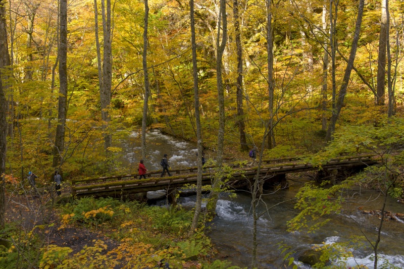 คุณสามารถเพลิดเพลินกับทัศนียภาพอันงดงามของสะพานสึนางิที่ทอดข้ามทะเลสาบและภูเขาอิวาเตะ