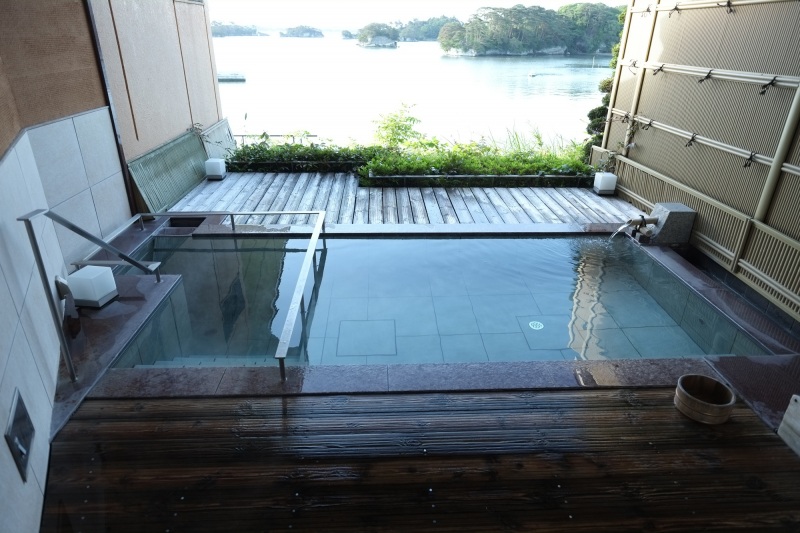 การได้แช่บ่อน้ำพุร้อนพร้อมชมมัตสึชิมะที่ส่องสว่างด้วยแสงจันทร์หรือพระอาทิตย์ขึ้นเป็นช่วงเวลาอันแสนสุขที่เฉพาะผู้ที่เข้าพักที่โรงแรมเท่านั้นที่จะสัมผัสได้